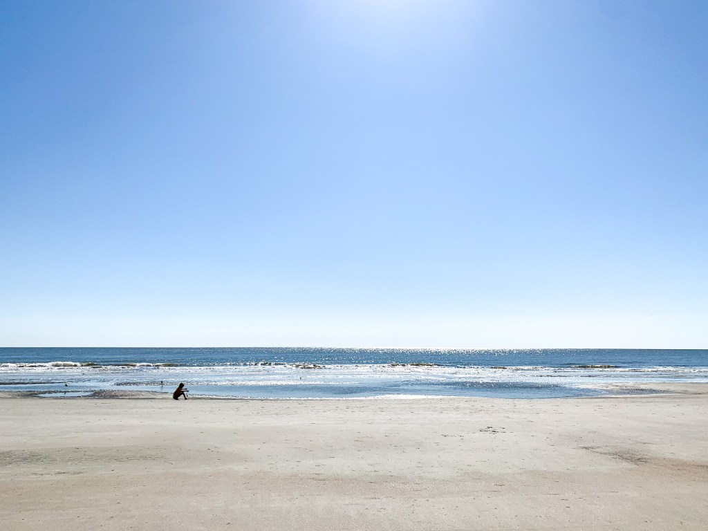 My eyes sweep miles of gleaming shoreline in disbelief. I am completely alone. I melt into the sand with an embarrassingly loud sigh, grains slipping around my fingers and toes. I breathe deeply, filling up with sea air and silence. No obligations. No needs to meet.